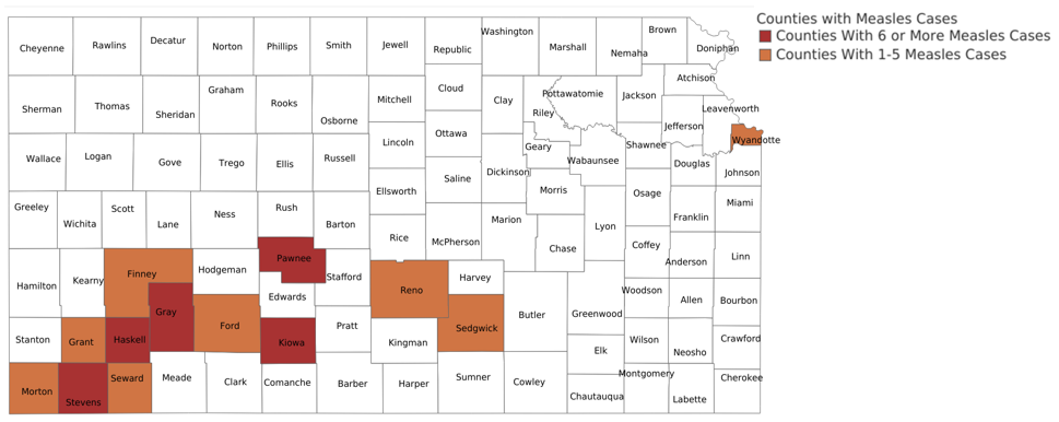 Mandated Reporters, including clinicians, are required by Kansas Administrative Regulation (K.A.R. 28-1-2) to report by phone all suspected cases of measles to the 24/7 KDHE Epidemiology Hotline (877-427-7317, option 5) within four (4) hours of suspicion to facilitate rapid testing and investigation. Please do not wait for test results. Be prepared to provide detailed information on clinical presentation, immunity status, and recent exposure history. Laboratories are required by K.A.R. 28-1-18 to report laboratory results of measles to KDHE using an approved electronic method.